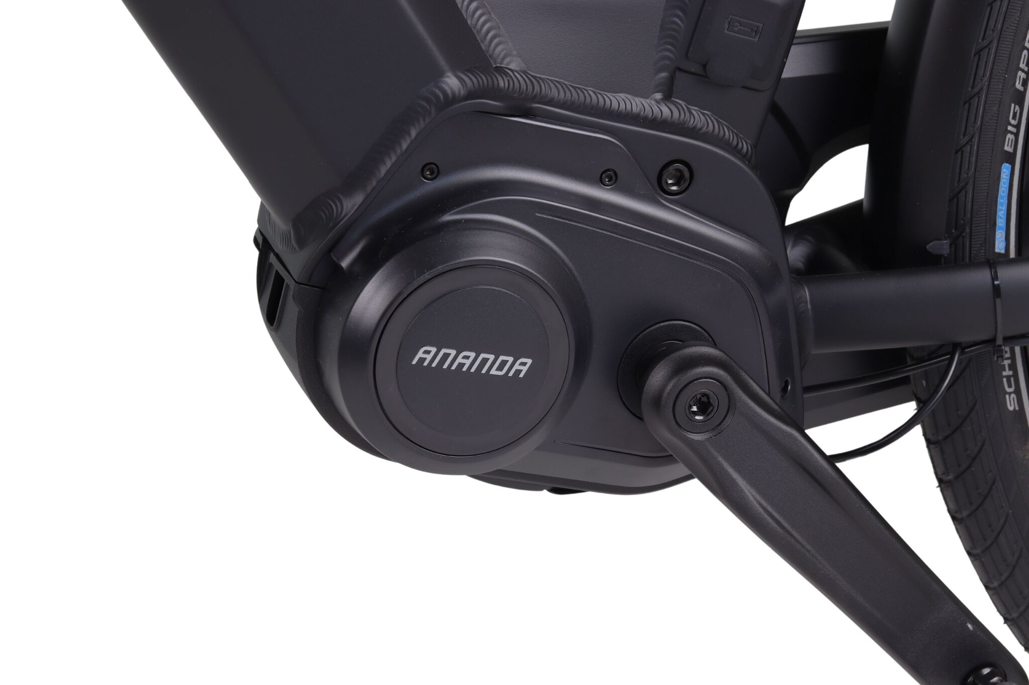 Dankzij de sterke Ananda middenmotor profiteer je van een natuurlijke en soepele trapondersteuning. De motor is centraal in het frame geplaatst, wat zorgt voor een optimale gewichtsverdeling en stabiel rijgedrag. De geïntegreerde accu van 733 Wh biedt een indrukwekkende actieradius van 80 tot 120 kilometer. Kies eenvoudig uit vijf verschillende ondersteuningsstanden om jouw rit precies naar wens af te stemmen.