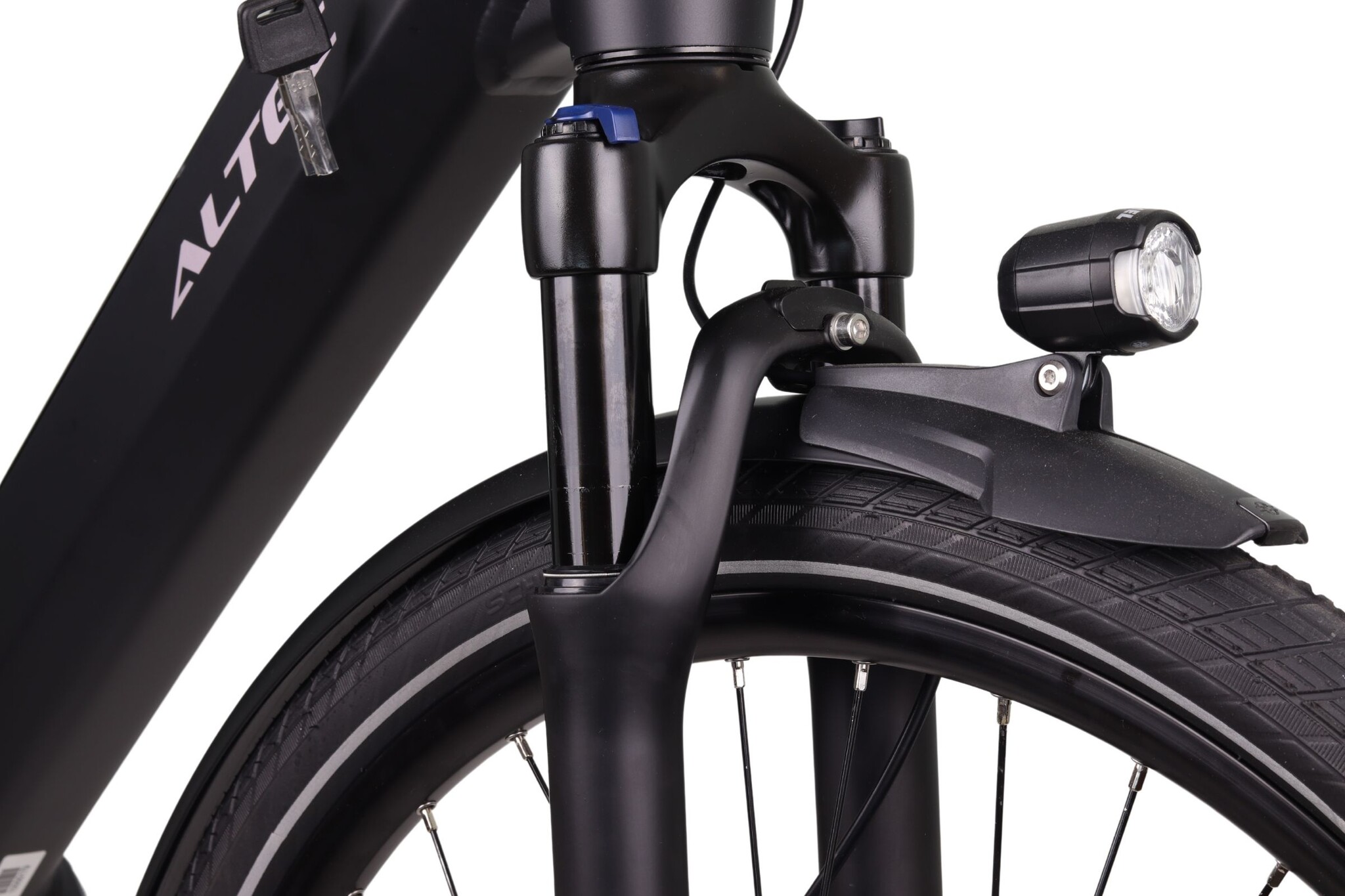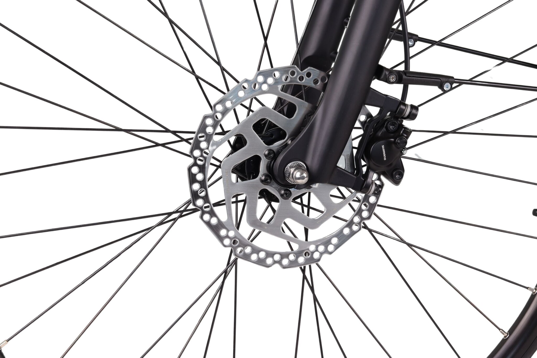 De hydraulische schijfremmen zorgen voor krachtige en betrouwbare remprestaties, zelfs bij nat weer of hogere snelheden. De verende voorvork dempt oneffenheden in de weg, terwijl de verstelbare stuurpen en het lichte aluminium frame bijdragen aan extra rijcomfort en controle.