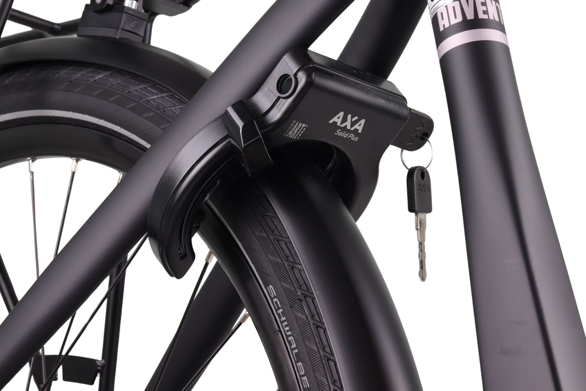 Naast de technische specificaties is deze e-bike voorzien van handige extra’s. Denk aan ingebouwde verlichting, een gesloten kettingkast die de ketting beschermt tegen vuil en regen, en een ART-goedgekeurd AXA Solid Plus ringslot. Alles wat je nodig hebt voor zorgeloos en onderhoudsvriendelijk fietsen.