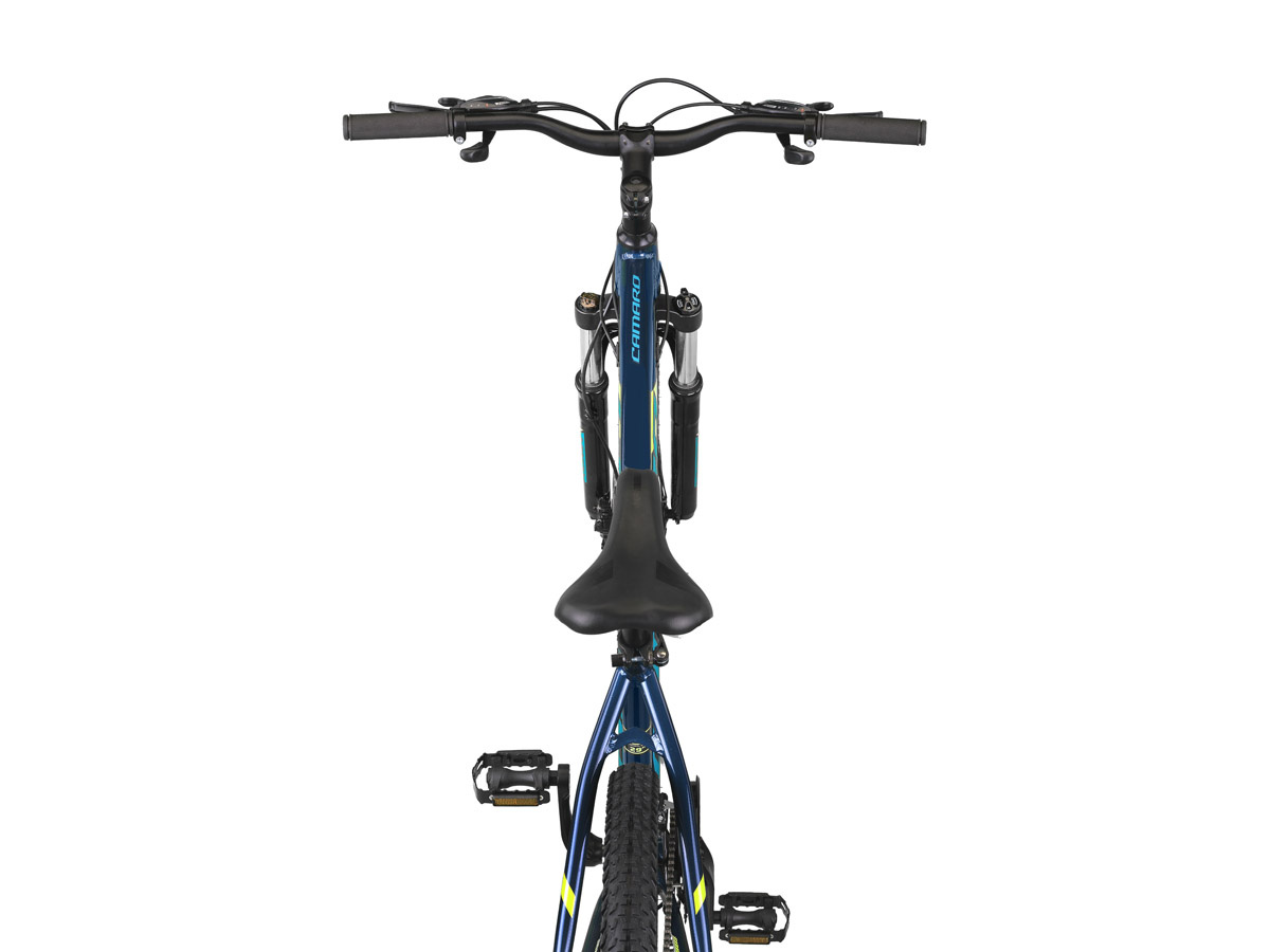 De hydraulische remmen zorgen voor gecontroleerde afdalingen. Houd er rekening mee dat er geen verlichting op deze fiets is; als u in het donker wilt fietsen, is het verstandig om zelf verlichting te installeren. Met 21 versnellingen zijn lange ritten geen probleem; schakel eenvoudig naar de juiste trapzwaarte en ervaar het plezier van fietsen! De verende voorvork vangt de meeste schokken en oneffenheden op, wat zorgt voor een comfortabele rit.