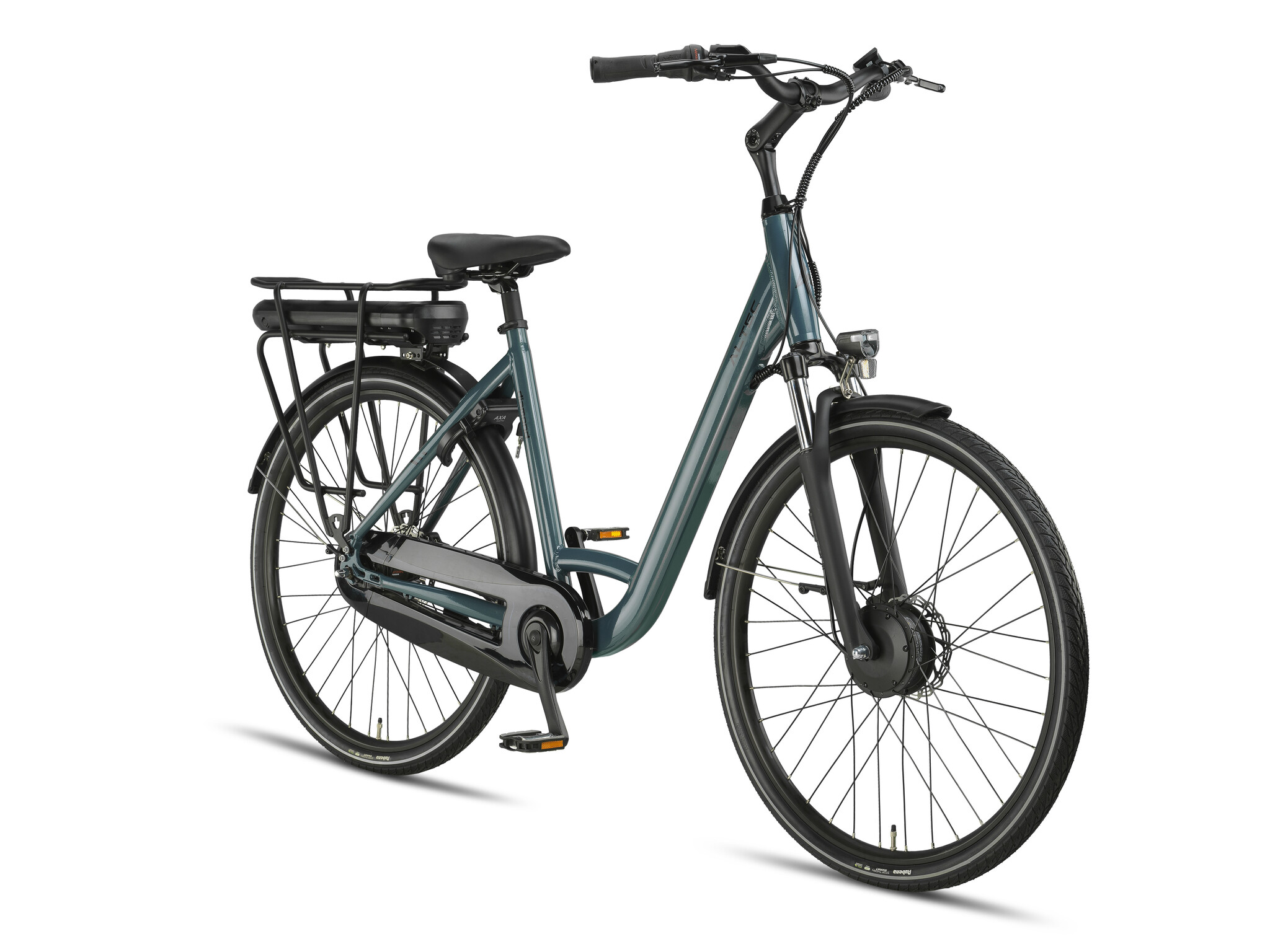 Luxe zit ‘m in de details: hydraulische schijfremmen zorgen voor krachtige en betrouwbare remprestaties bij elk weertype, terwijl het lichtgewicht aluminium frame in moderne kleuren als Blue Glaze of Mat Zwart jouw fiets een premium uitstraling geeft. De geïntegreerde verlichting, reflecterende banden en stevige standaard maken het plaatje compleet.
