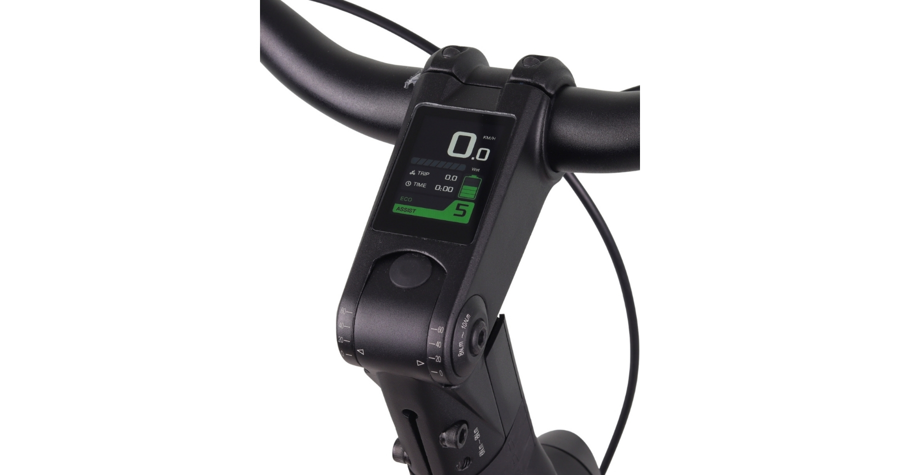 Het geïntegreerde display van de Altec Blitz is strak in het stuur verwerkt, waardoor het design elegant en minimalistisch blijft. Tijdens het fietsen heb je alle belangrijke informatie direct in beeld: snelheid, accuniveau, trapondersteuning en afstand.