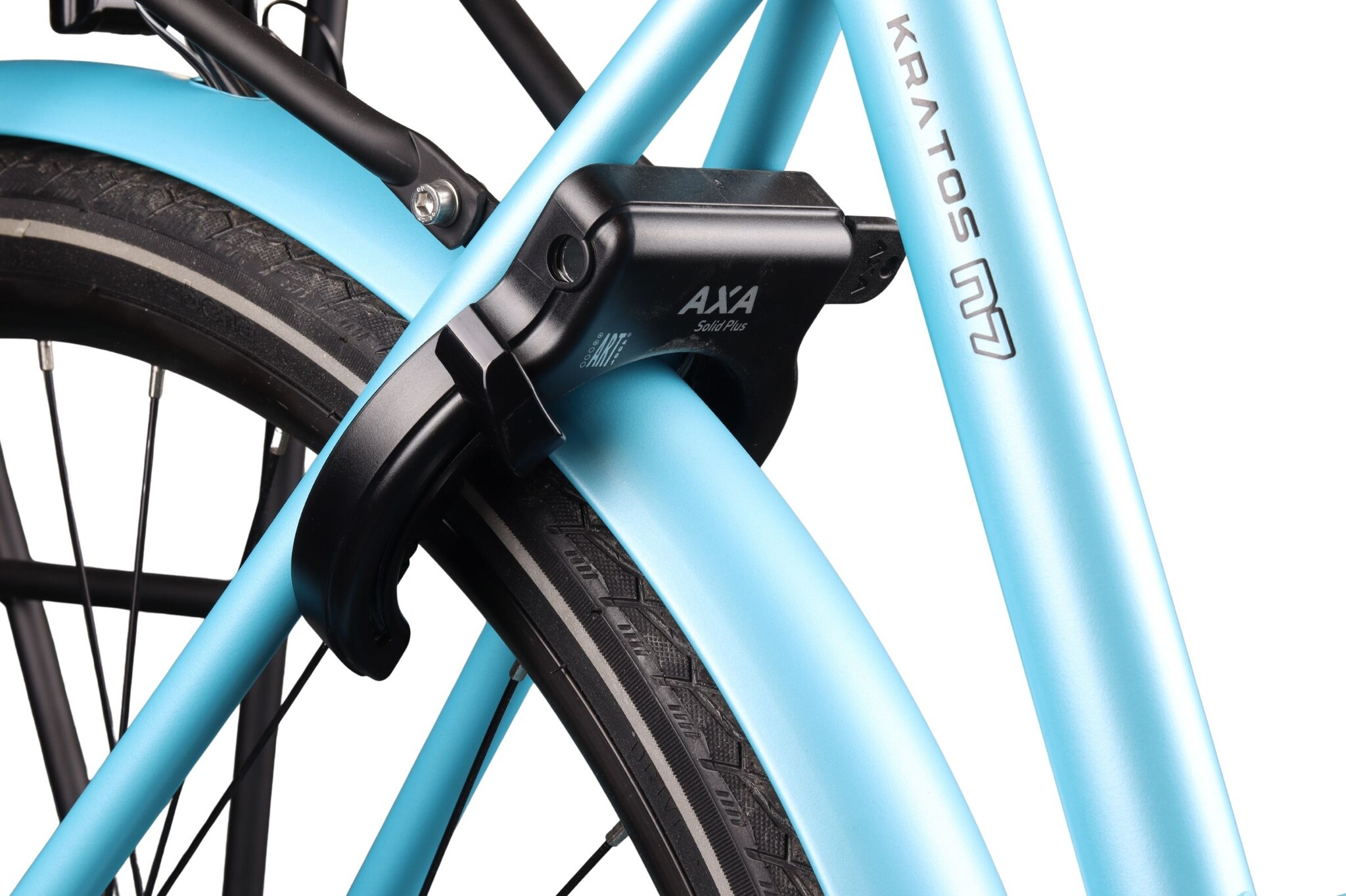 Remkracht is cruciaal – zeker bij een beladen transportfiets. Daarom is de Kratos uitgerust met hydraulische schijfremmen. Deze remmen krachtig en betrouwbaar, ongeacht regen of droogte. Het duurzame aluminium frame is volledig roestvrij, en dankzij het ART 2 goedgekeurde ringslot staat je fiets veilig op slot. Wil je nog een stap verder gaan? Combineer het met een extra ART 2 kettingslot en je kunt hem meteen verzekeren.