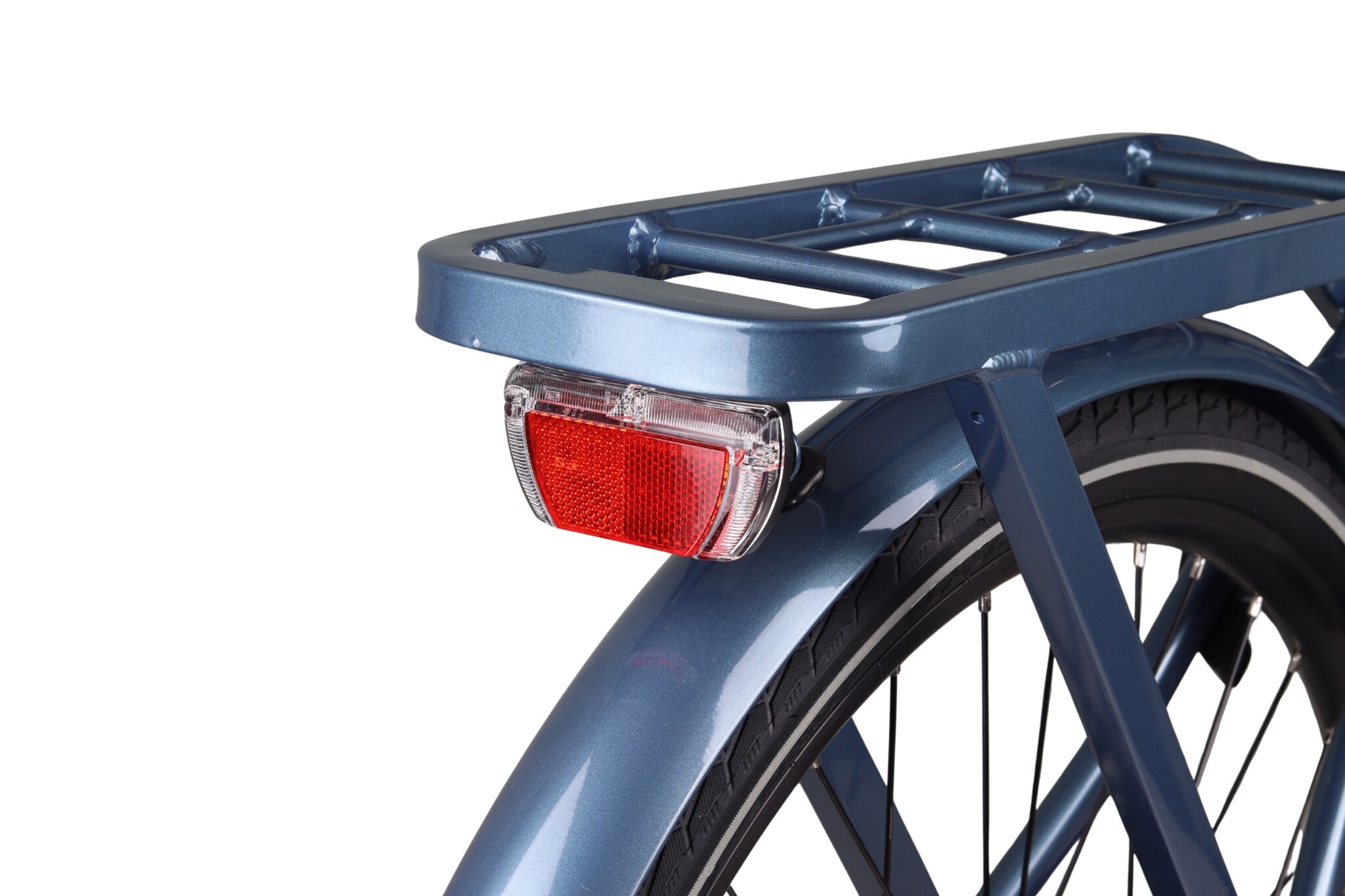 Het aluminium frame roest niet en is licht van gewicht. Een AXA ringslot is standaard gemonteerd, zodat je jouw fiets eenvoudig kunt verzekeren. Geïntegreerde kabels geven de fiets een nette uitstraling. Met de geïntegreerde verlichting, die je met een simpele druk op het plusknopje aan- of uitzet, ben je altijd goed zichtbaar in het donker.