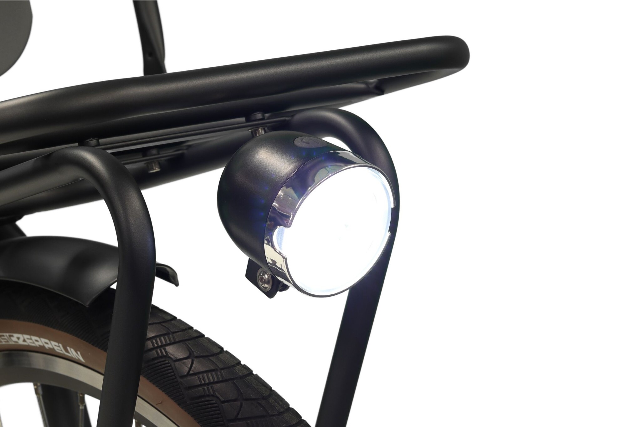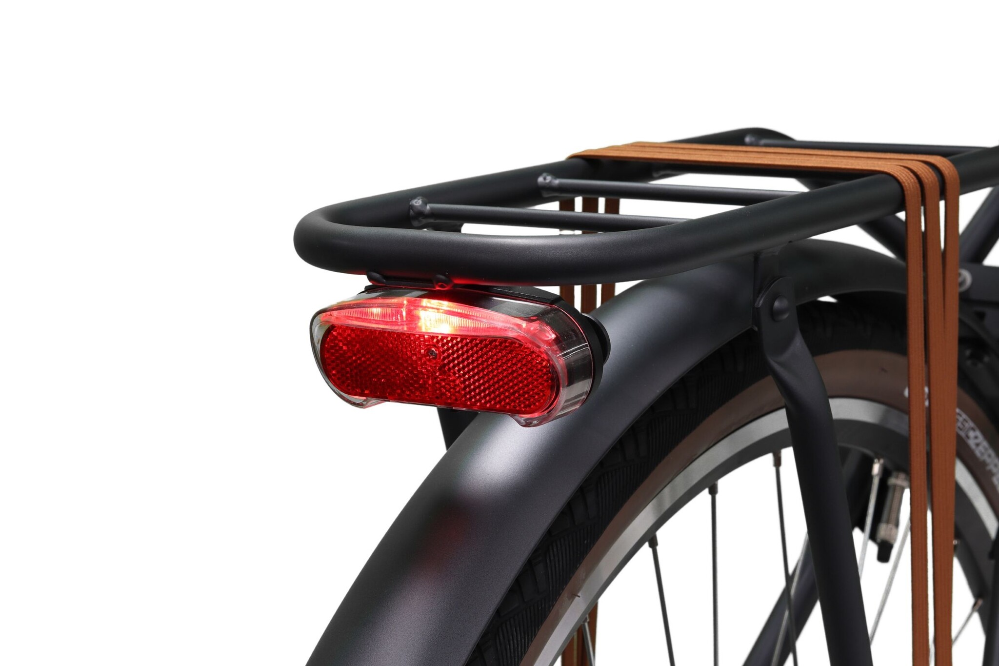 Deze luxe transportfiets biedt net iets meer. Het fraaie design gaat hand in hand met praktische specificaties. De voordrager kan tot maar liefst 25 kilo dragen, wat ideaal is voor het vervoeren van zware boeken of boodschappentassen. Het aluminium frame is niet alleen stevig, maar ook licht en roestvrij, waardoor je fiets er zelfs na een regenbui nog prachtig uitziet. De rollerbrake handremmen zijn betrouwbaar en vereisen weinig onderhoud.